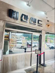 한국의 예산시장에서 유명한 카이막 샌드 전문점입니다.