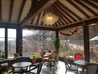 카페는 매우 사랑스럽고 바깥에 볼 수 있는 예술이 많았어요. 칠갑산 근처에 있어서 쉽게 접근할 수 있었고 자연과 하나가 된 느낌이었어요.
